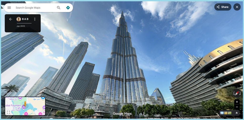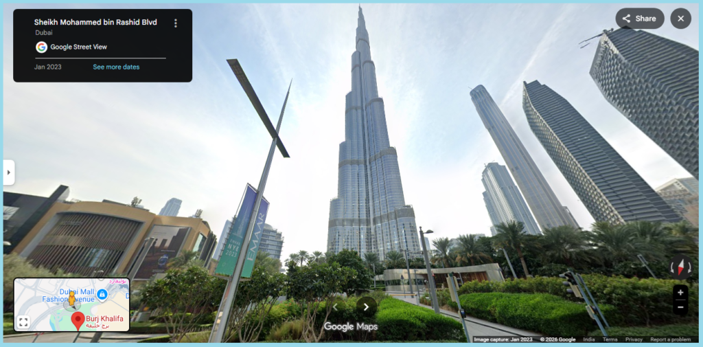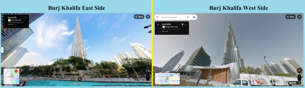 पुढे व्हायरल व्हिडिओमधील दृश्यांची तुलना गुगल स्ट्रीट व्ह्यूवर उपलब्ध बुर्ज खलिफा आणि त्याच्या आसपासच्या परिसराशी केली असता कळाले की, व्हिडिओतील इमारत आणि परिसर दुबईतील खऱ्या बुर्ज खलिफाशी जुळत नाही.