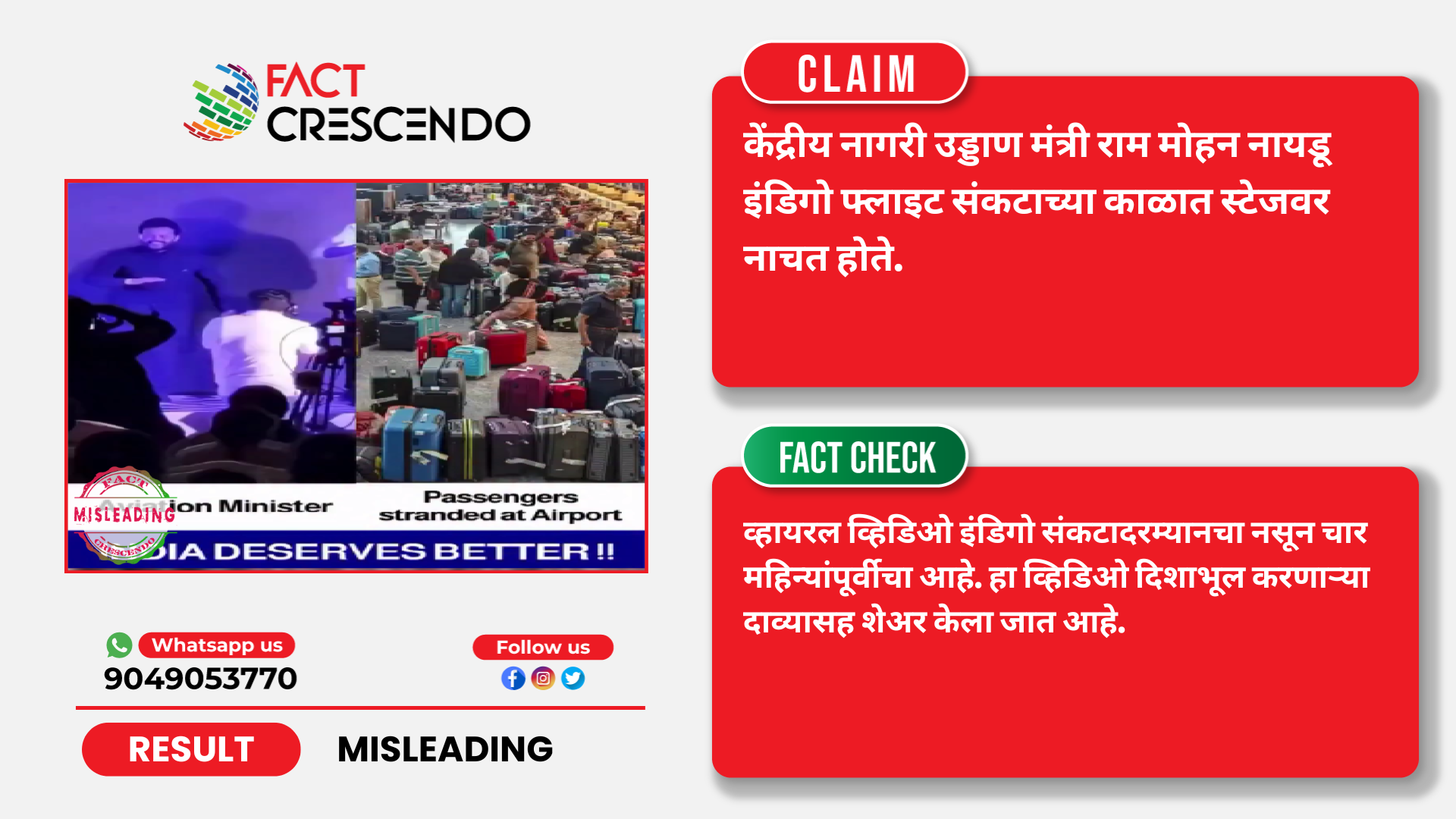 दावा केला जात आहे की, इंडिगोमध्ये संकट सुरू असताना केंद्रीय नागरी उड्डाण मंत्री राम मोहन नायडू एका कार्यक्रमात स्टेजवर डान्स करता आहेत.