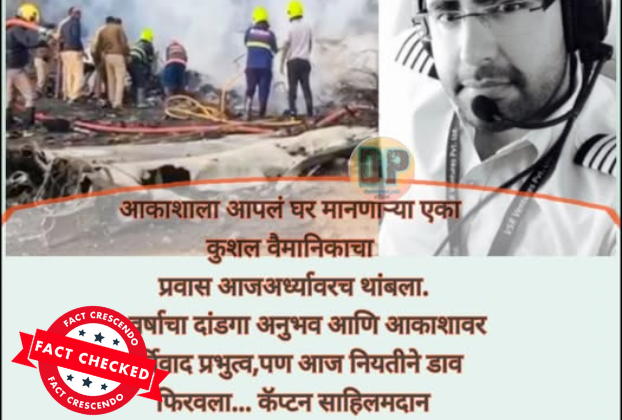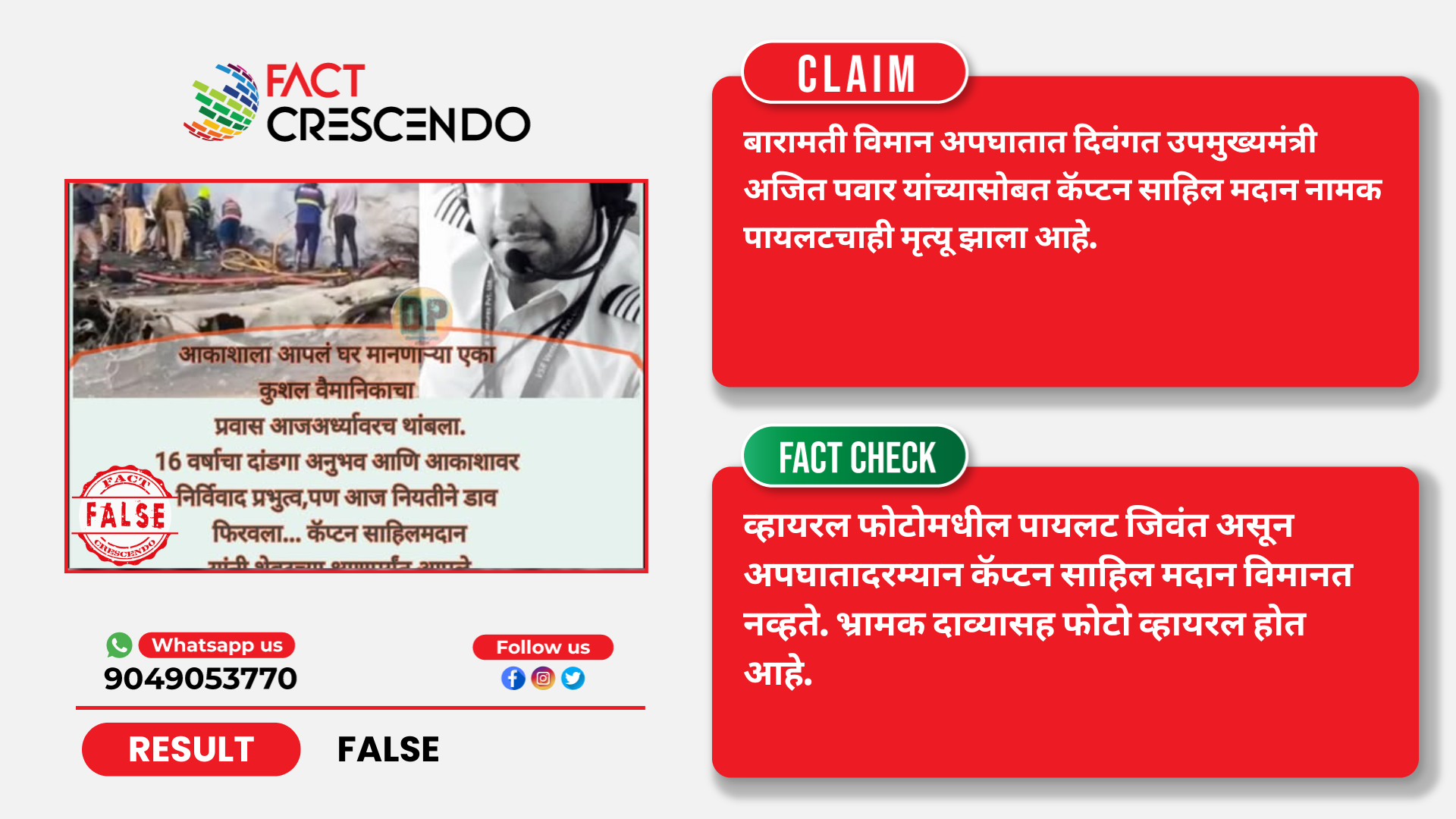 यावरुन सिद्ध होते की, व्हायरल फोटोमधील कॅप्टन साहिल मदान जिवंत असून दुर्घटनेच्या वेळी ते विमानात नव्हते. भ्रामक दाव्यासह फोटो व्हायरल होत आहे.