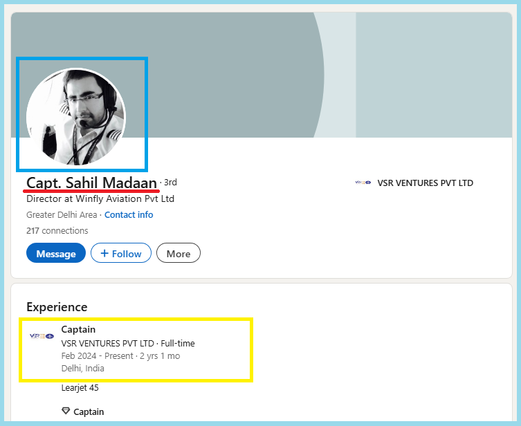 ग्राफिकमध्ये लिहिले होते की, “आकाशाला आपलं घर मानणाऱ्या एका कुशल वैमानिकाचा प्रवास आजअर्ध्यावर थांबला. 16 वर्षाचा दांडगा अनुभव आणि आकाशावर निर्विवाद प्रभुत्व, पण आज नियतीने डाव फिरवला… कॅप्टन साहिल मदान यांनी शेवटच्या क्षणापर्यंत आपले कर्तव्य बाजवले, पण दुर्दैवाने त्यांचा हा प्रवास अपूर्ण राहिला. एका निष्ठावान आणि शूर वैमानिकाला भावपूर्ण श्रध्दांजली !”