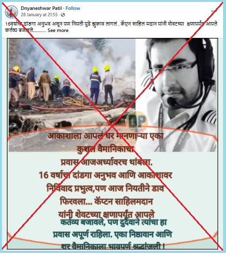 डीएनए इंडिया न्यूजने आपल्या इंस्टग्रामवर व्हायरल फोटो शेअर करत बारामतीमध्ये झालेल्या विमान अपघातात कॅप्टन साहिल मदान यांचा मृत्यू झाल्याचे सांगितले.