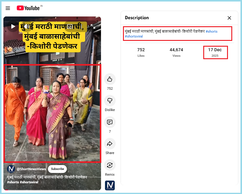 व्हिडिओच्या ग्राफिक आणि कॅप्शनमध्ये लिहिले होते की, “मुंबई मराठी माणसांची, मुंबई बाळासाहेबांची – किशोरी पेडणेकर.”