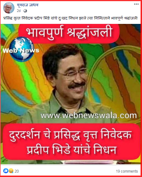 Title:सुप्रसिध्द वृत्तनिवेदक प्रदीप भिडे यांचे निधन झाल्याचे वृत्त खोटे; वाचा सत्य