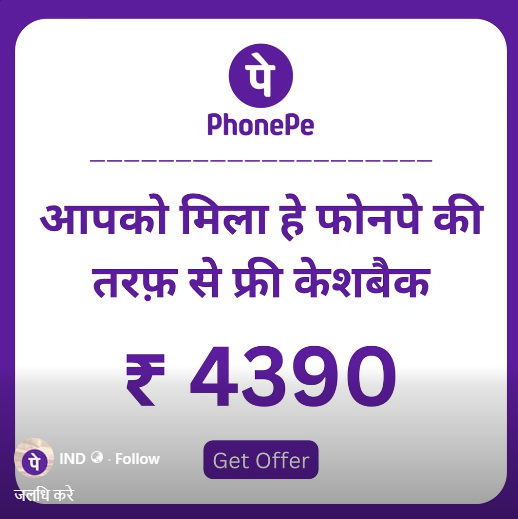 व्हिडिओमध्ये असे सांगितले जाते की सर्व ‘फोनपे’ युजर्सना ४३९० रुपयांपर्यंत कॅशबॅक मिळत आहे आणि ते लगेच क्लेम करा.