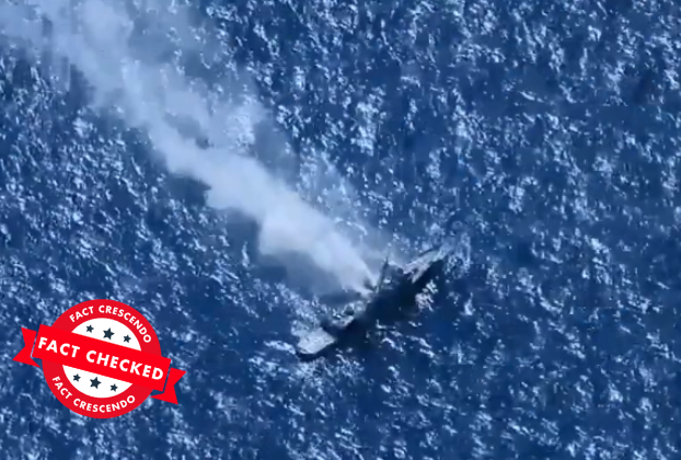 व्हायरल व्हिडिओमध्ये समुद्रात एका जहाजावर मिसाईल हल्ला झालेला दिसतो.