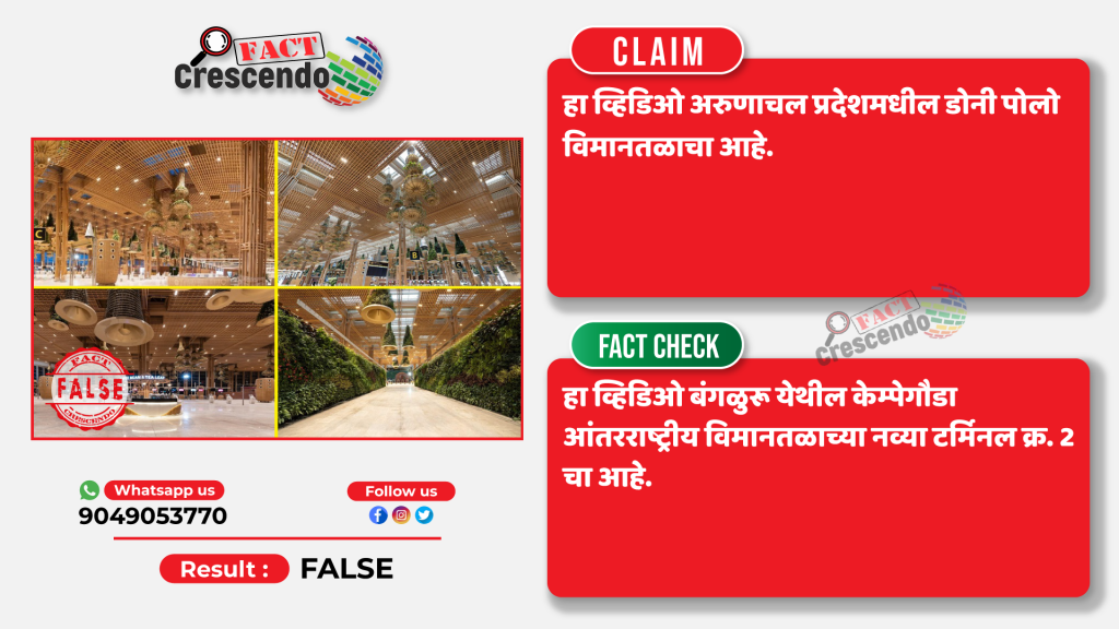 यावरून हे सिद्ध होते की, व्हायरल होत असलेला व्हिडिओ अरुणाचल प्रदेशमधील डोनी पोलो विमानतळाचा नाही. हा व्हिडिओ बंगळुरू येथील केम्पेगौडा आंतरराष्ट्रीय विमानतळाच्या नव्या टर्मिनल क्र. 2 चा आहे.